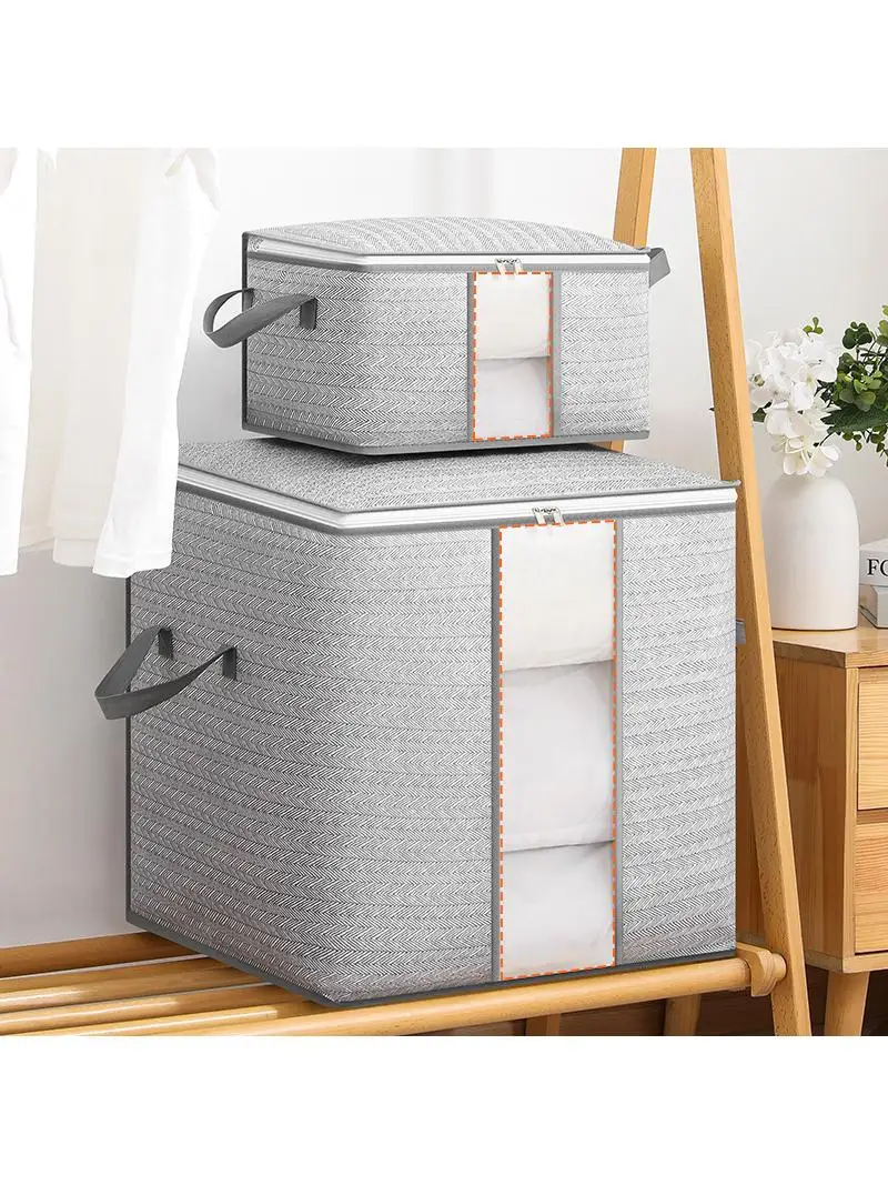 Large Capacity Zipper Cotton Quilt Storage Bag with Visible Window Moving Home Organization Bag for Clothes And Bedding $12.47