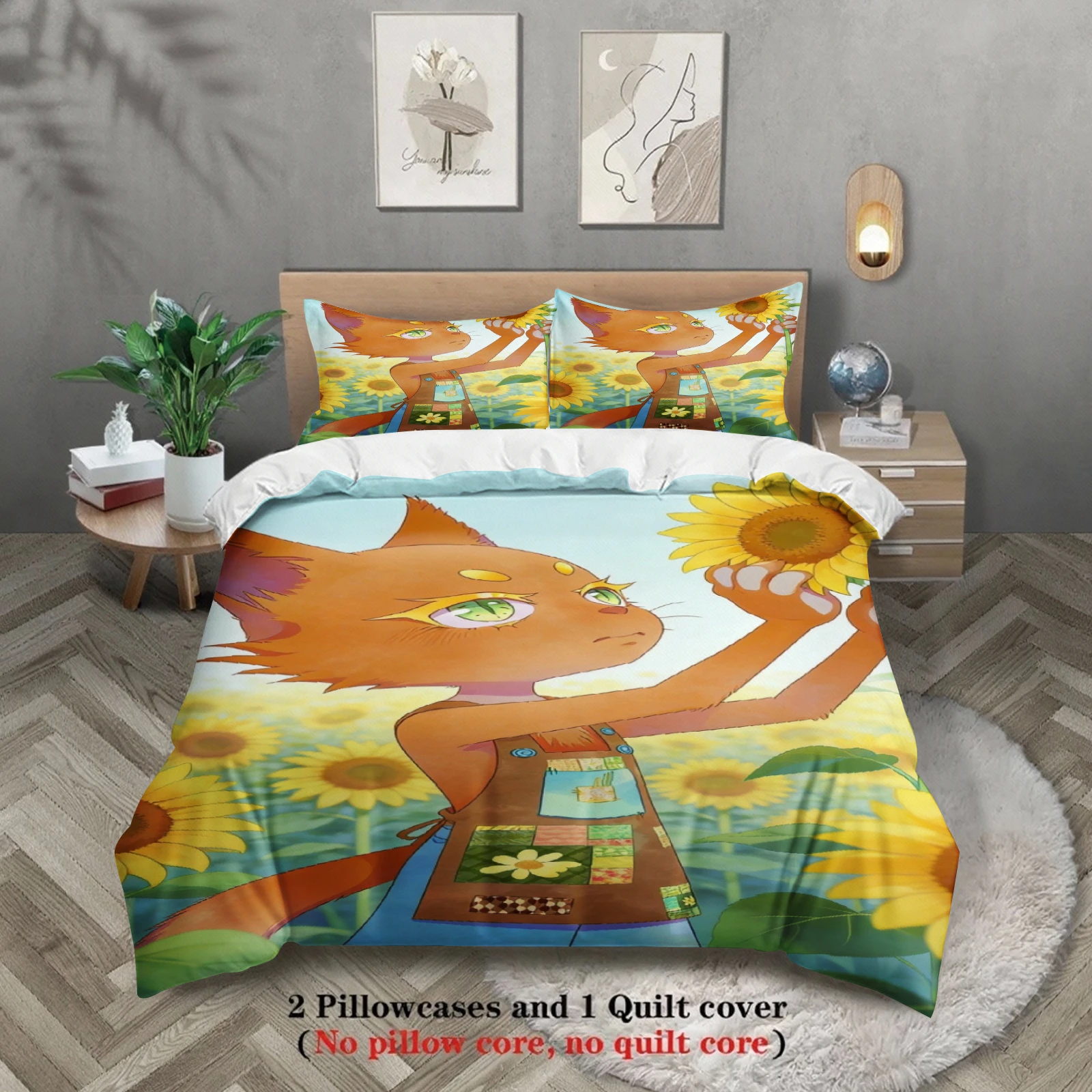 Sunflowers Bedding Set Softville Cozy Town Cute Fern the Quilt Fox With Duvet Cover & Pillowcase For Children's Bedroom Decor $22.18