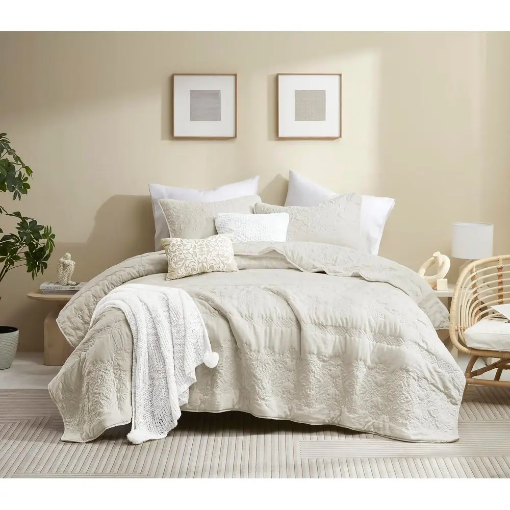 Boho Light Beige Quilt King Size Bedding Sets with Pillow Sham, Bohemian Lightweight Bedspread Coverlet, Farmhouse Floral Vintag $52.56