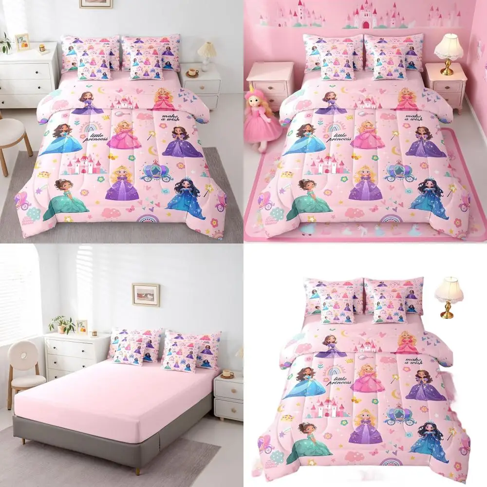 Full Size Pink Princess Castle Bedding Set: Comforter, Sheets, Pillowcases, and Decor for Fairytale Dreams $119.79