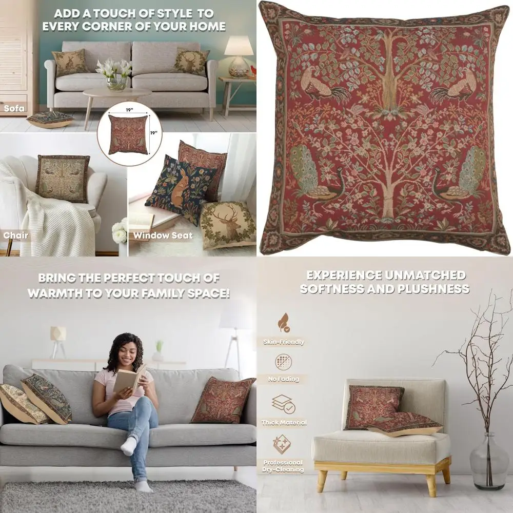 Red Tree Tapestry Pillow Cover, 19x19 inches, French Country Style, Soft Cotton Jacquard for Living Room & Bed Decor $136.37