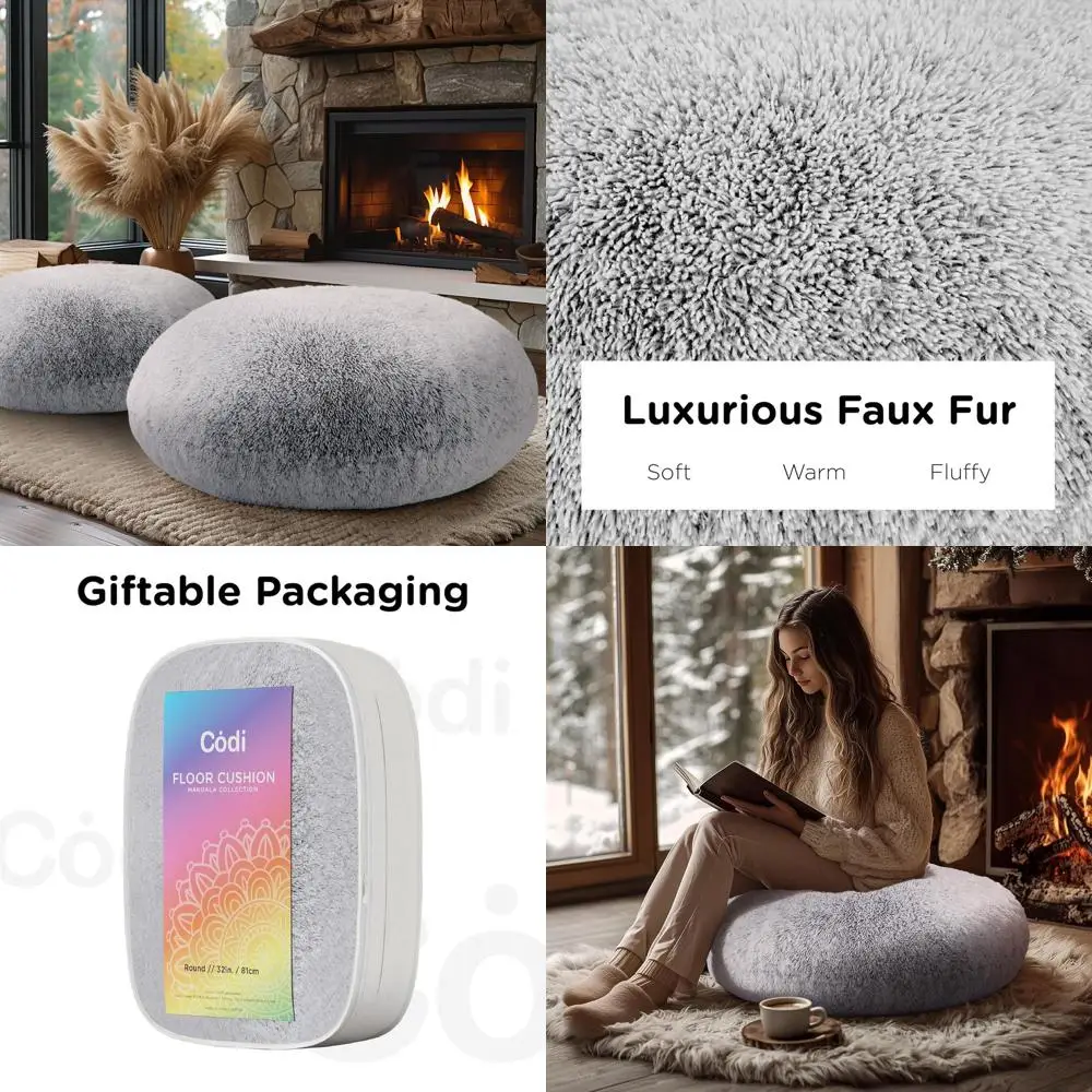 Luxurious Plush Faux Fur Floor Pillows, 32 Light Grey, Cozy Cushions for Living Room & Fireplace, Perfect for Christmas Decor $114.99