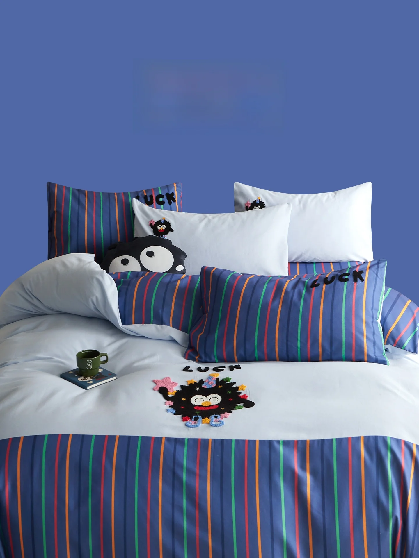 Warm Pure Cotton Four-Piece Bedding Set Cartoon Five-Color Small Coal Ball Towel Embroidered Skin-Friendly Brushed Duvet Cove... $149.83
