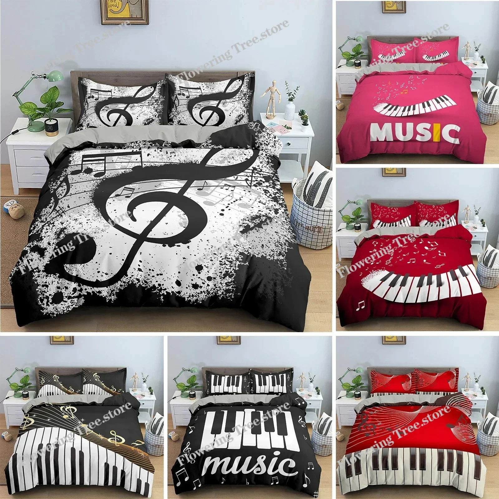 Music Bedding Set Piano Keyboard Music Note Duvet Cover Queen Size Bed Linen Comforter Microfiber Guitar Polyester Bedding Sets $24.60