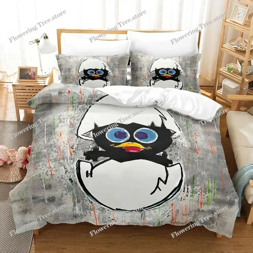 Anime Cute Calimero Bedding Set Duvet Cover Bed Set Quilt Cover Pillowcase Comforter king Queen Size Boys Adult Bedding Set $24.60