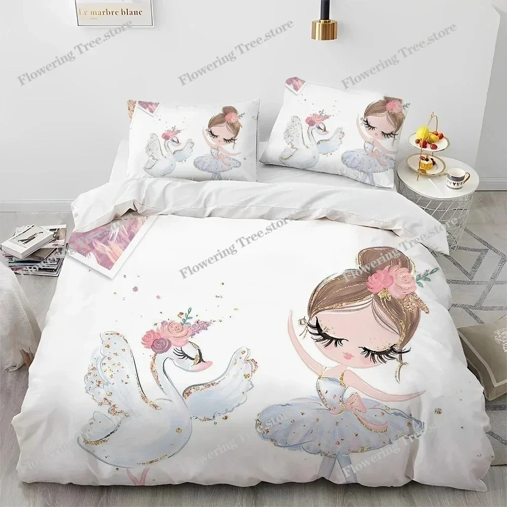 Cartoon Cute Ballet Girl Ballerina Bedding Set Duvet Cover Bed Set Quilt Cover Pillowcase Comforter king Queen Size Boys Adult $24.60