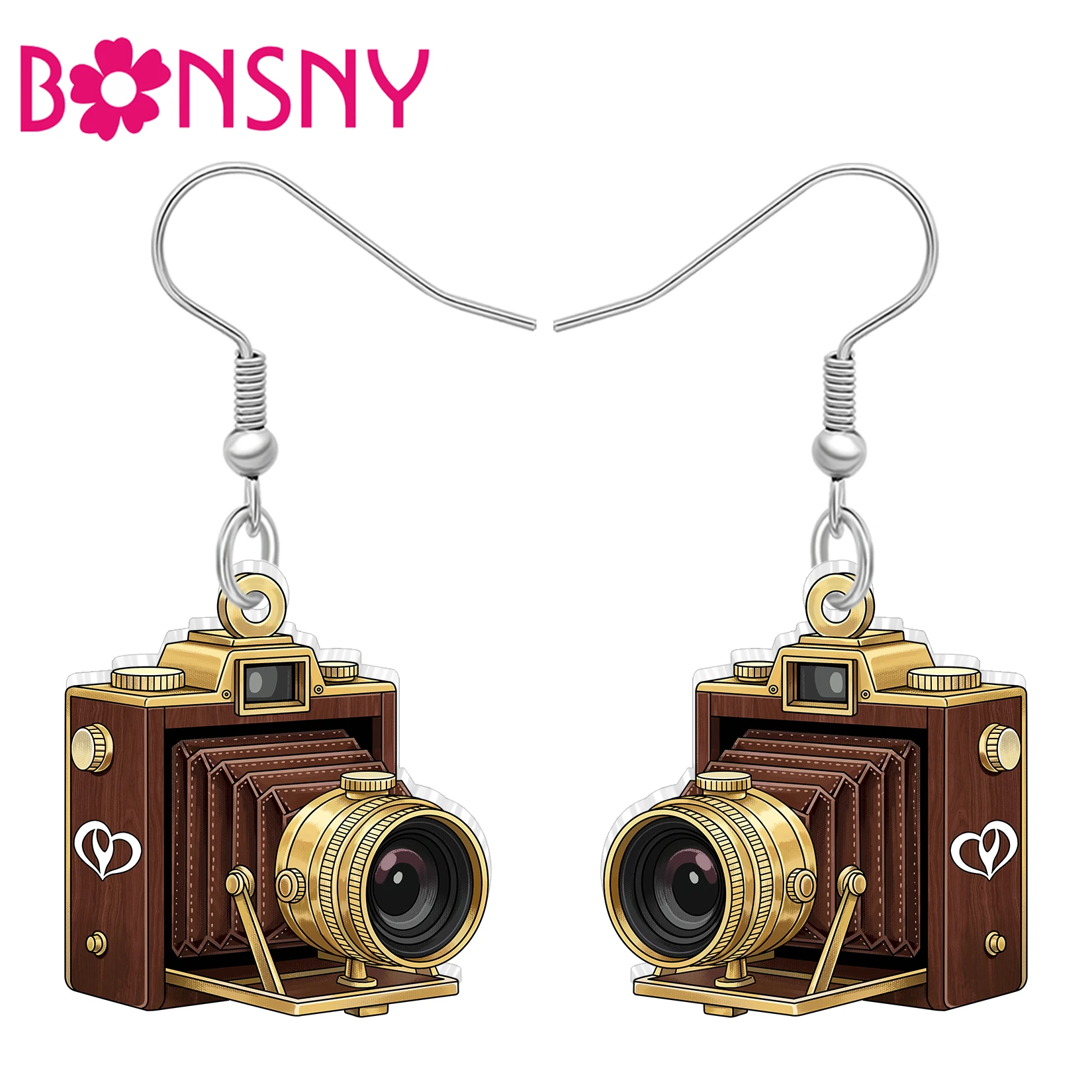 BONSNY Acrylic 70s 80s 90s Vintage Bellows Camera Dangle Earrings Retro Photography Jewelry Nostalgia Gifts For Women Mom Charms $2.71