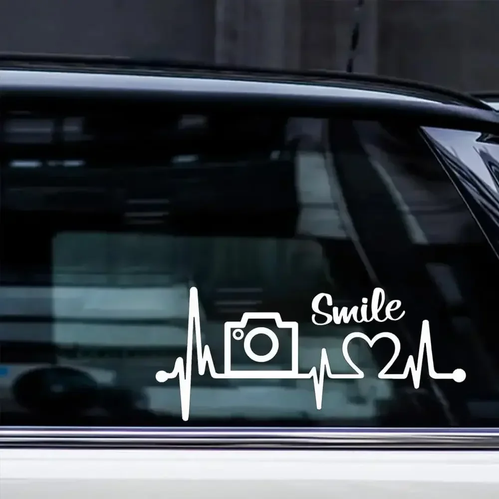 1PC Smile Camera Heartbeat Car Sticker, Bumper Windshield Auto Decal for Electric Cars, Motorcycles, SUVs, Vans, Measuring $3.31