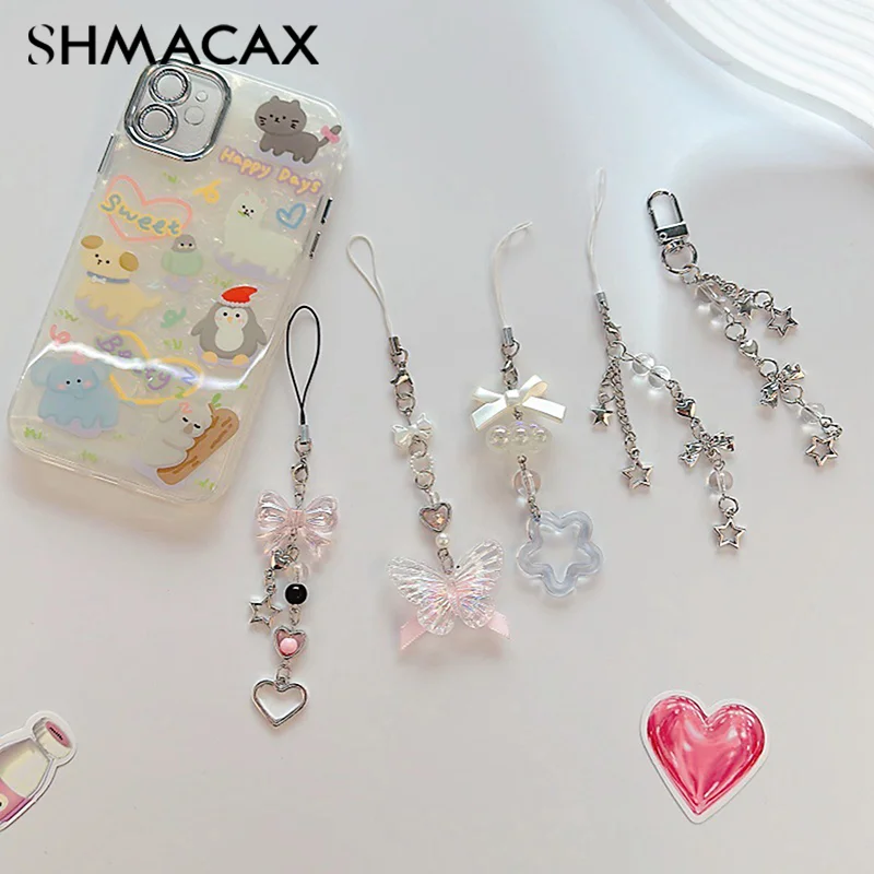 Cute Butterfly Bead Keychain for IP 11 Camera - 1PC Handmade Pendant; Sweet Girl's Kawaii Y2K Love Five-point Star Phone Charms $3.53
