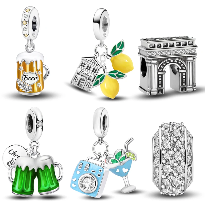 925 Silver Color Summer Camera Beer Lemon Town Casual Series Bead Fit DIY Bracelet Making Gift Of High Quality Jewelry $4.79