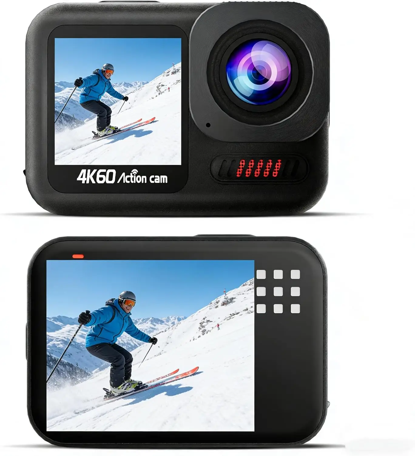 4K60FPS Waterproof Action Camera with 64GB Card, Touch Screen, 8X Zoom, EIS Stabilization for Sports & Adventure $64.00