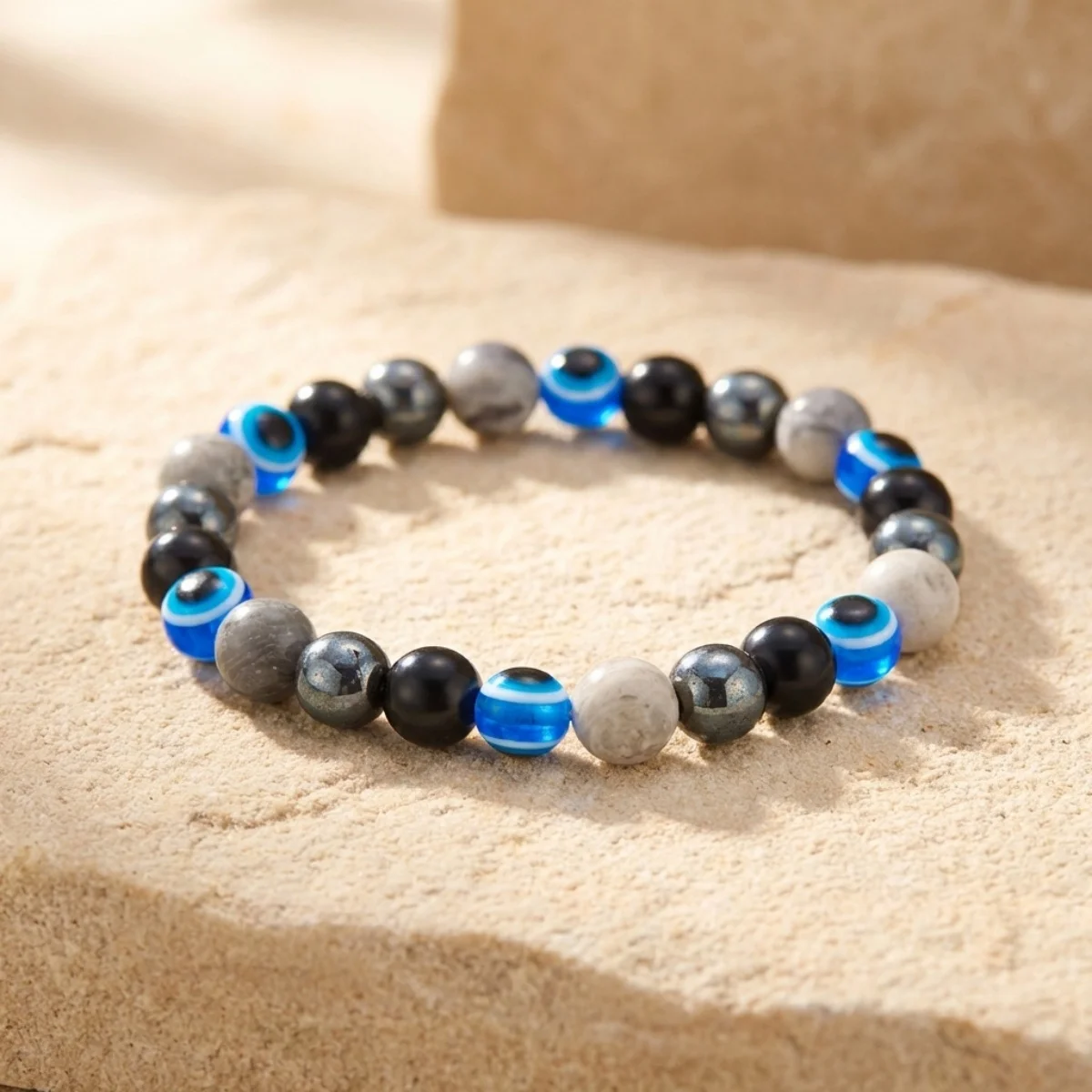 Blue Evil Eye Natural Hematite Volcanic Stone Crystal Stone Beaded Bracelets For Women Men Lucky Bangle Healing Energy Jewelry $2.32