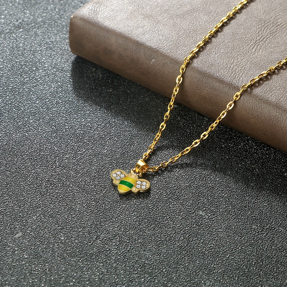 Cartoon Bee Pendant Necklace Smart Cute Small Animals Friends Gifts Gold Silver Colors Chain Necklace Men Women Fashion Jewelry $1.49