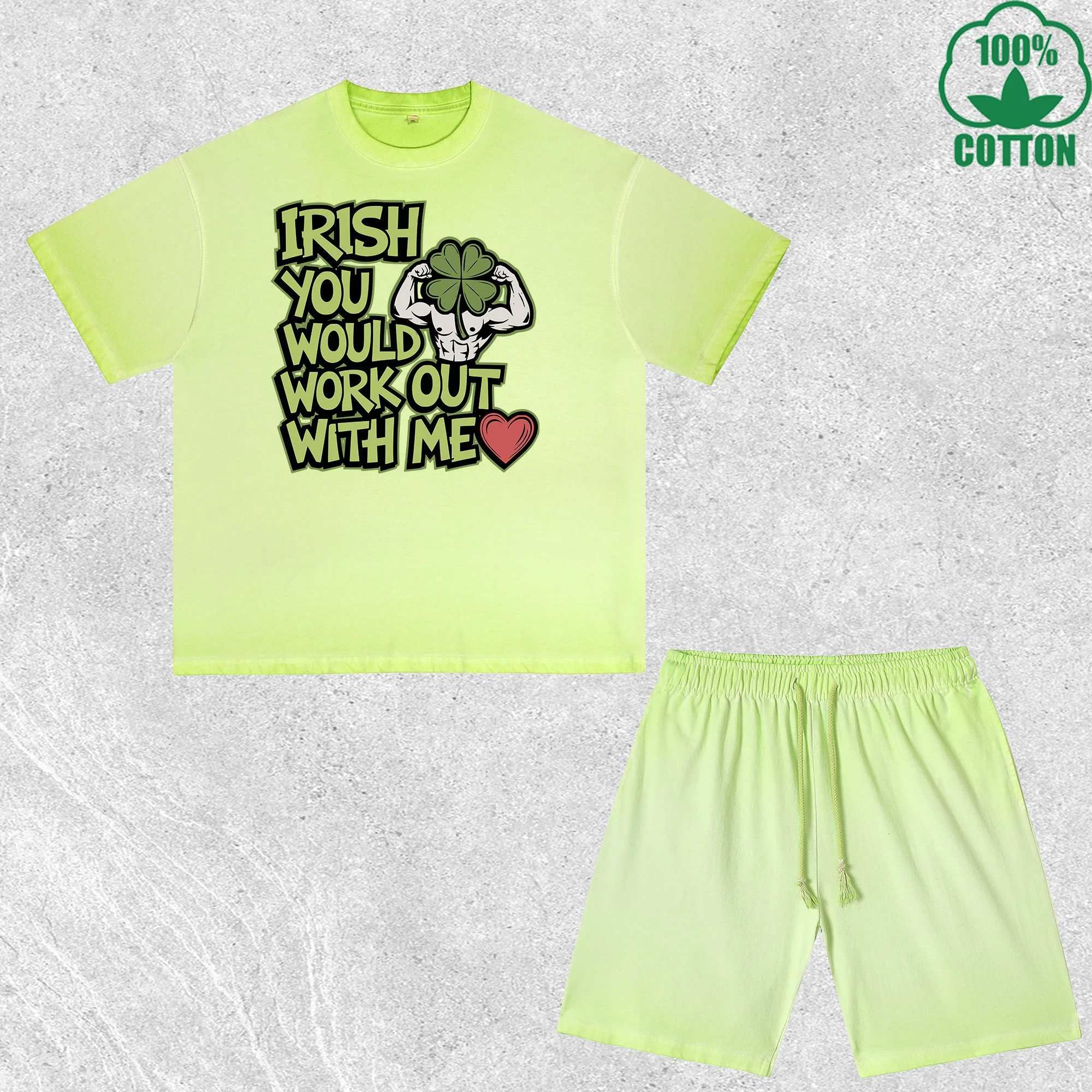 Saint Patrick a Latte Printed Dirty Wash T-Shirt Shorts Set Multicolor Combo Loose Trendy Fashionable 100%Cotton Short $22.98