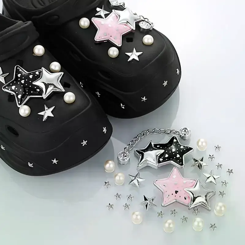 1 Set Fashion Star Pearl Sandals Decoration Metal Chain Accessories For Clogs Garden Shoe Charms Kit DIY Detachable Shoe Parts $1.63