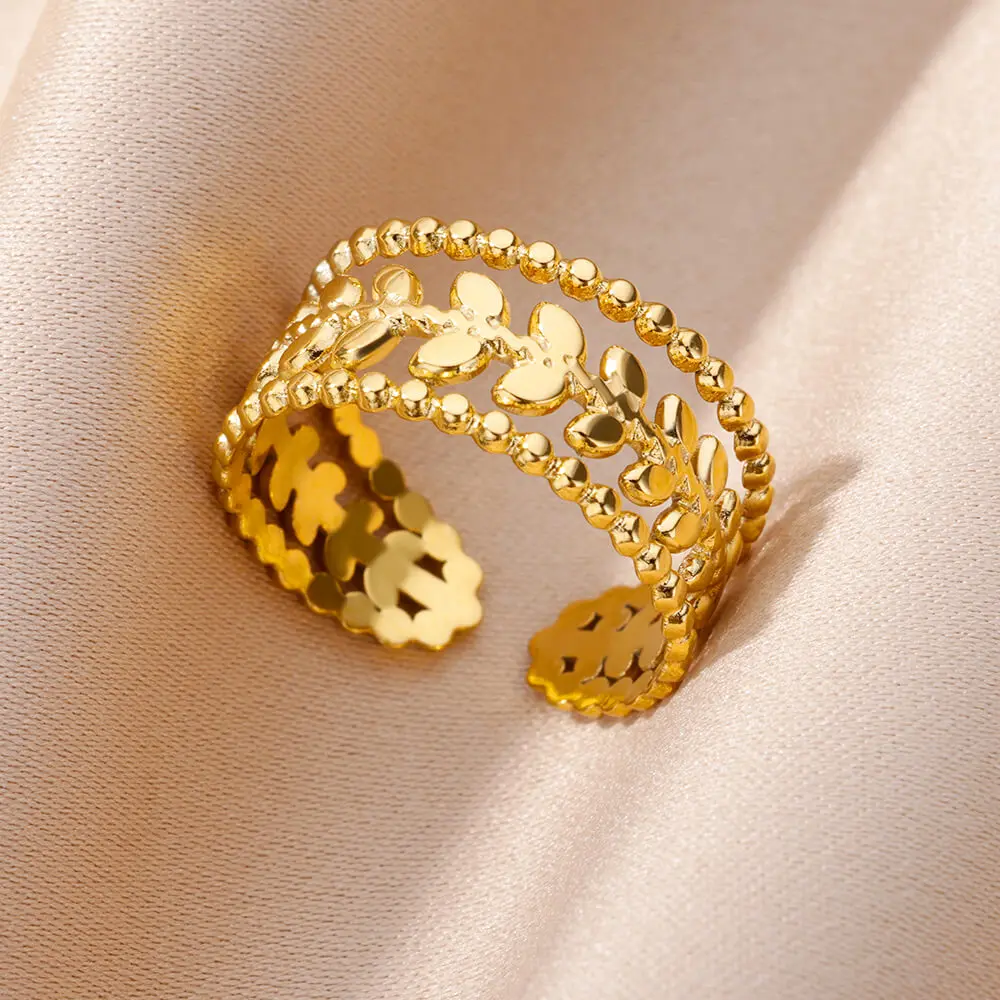 18K Gold Plated Multi-layered leaf Open Rings For Women Classic Stainless Steel Adjustable Finger Ring Jewelry Accessories $3.38