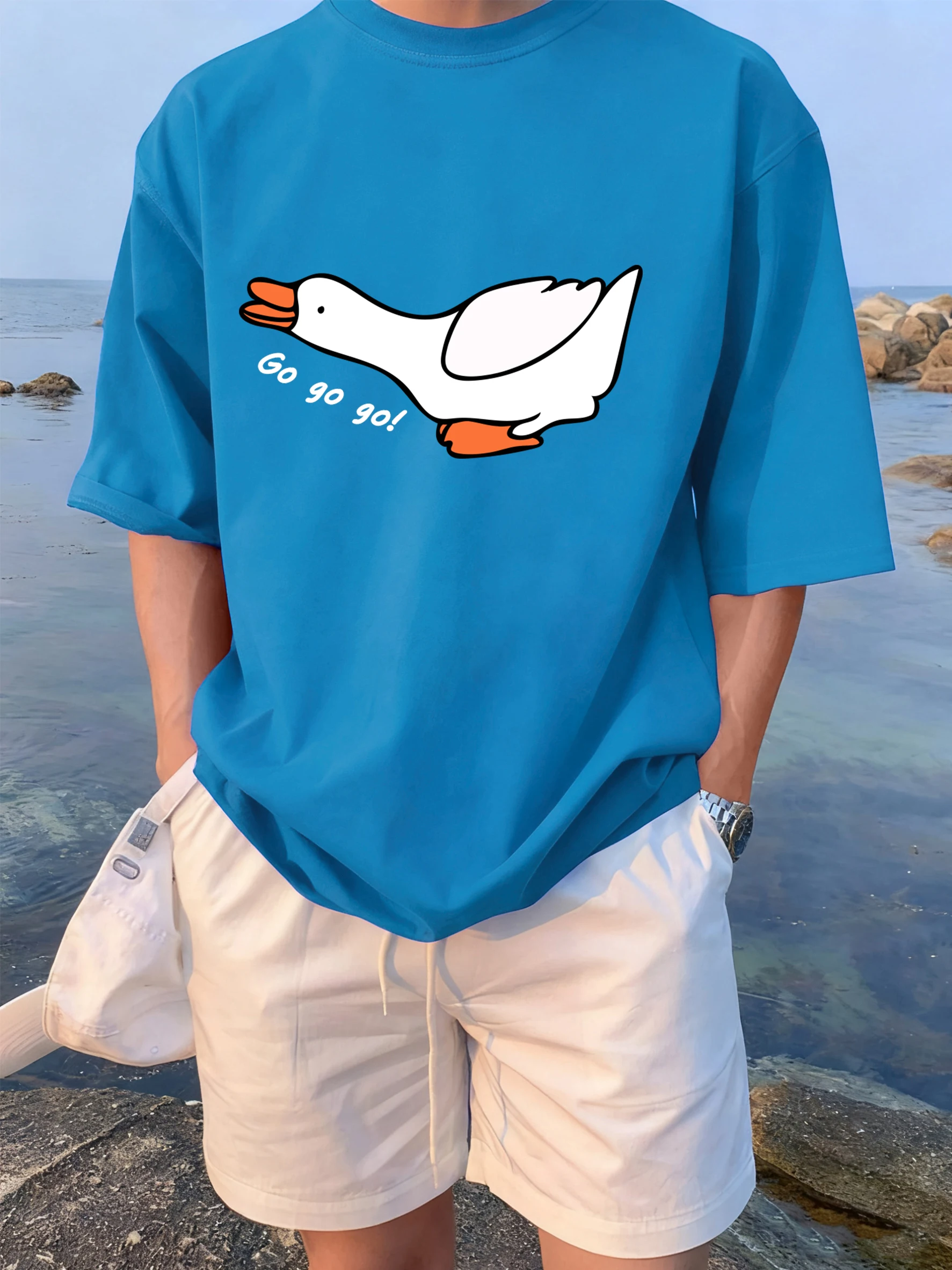 Goose Charge Forward Design T-Shirt Men Cotton Summer T Shirts All-Match Trendy Clothing Unisex Loose Fashion Streetwear $12.18
