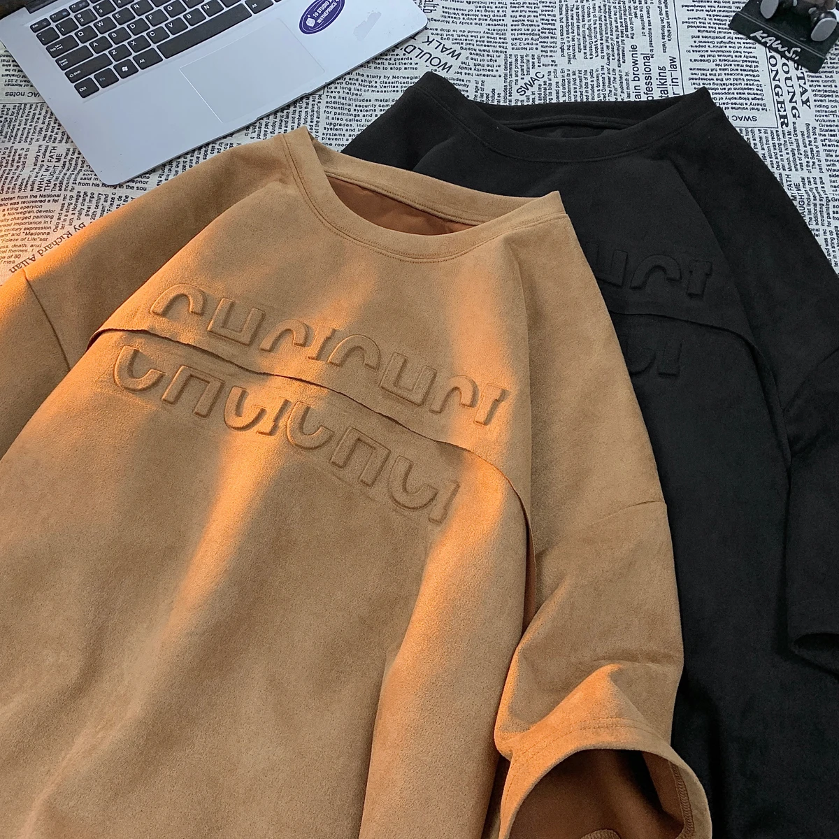 Suede Short Sleeve T-Shirt Men's Summer Trendy New American Retro Heavyweight Body Shirt Men's Fashion Upper Apparel $37.23