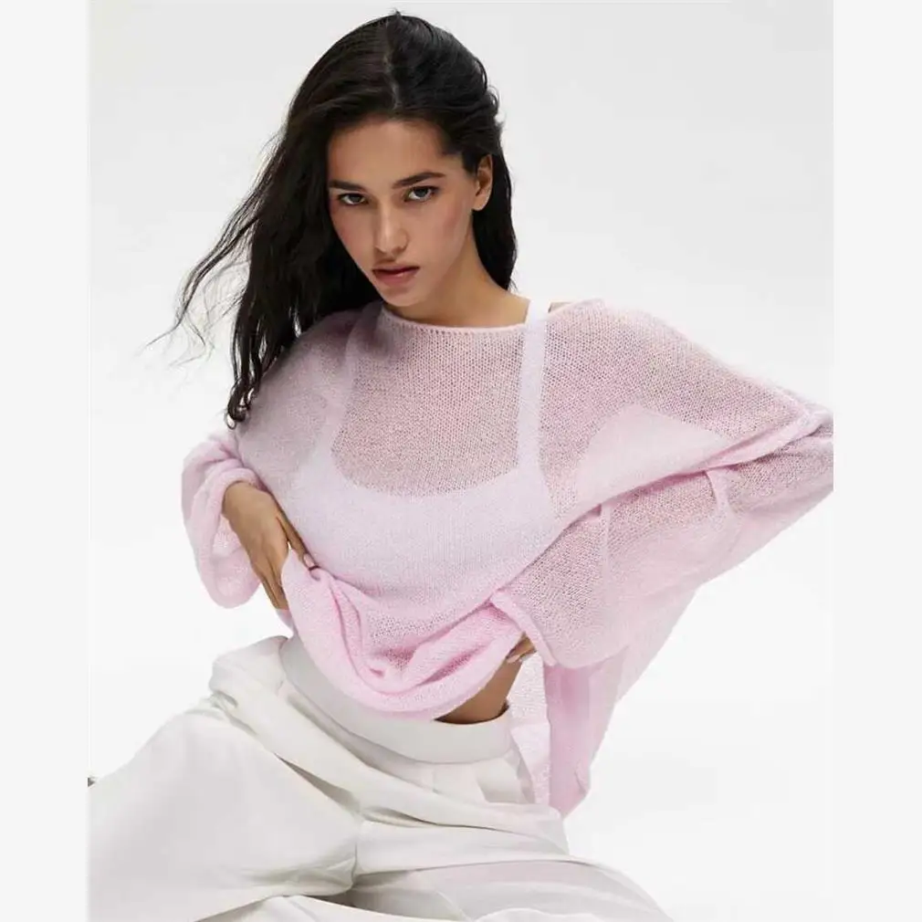 New Loose Long Sleeve Knitted Mesh Top Women's Fashion Breathable See-through Design A-Line Sweater Spring Autumn Season $17.18