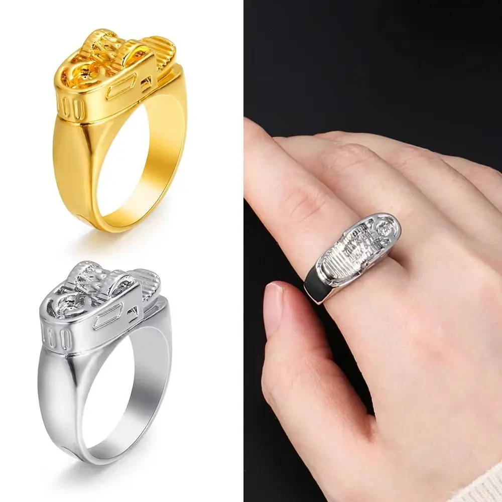 Alloy Material Lighter Ring Creative Design Trendy Style Geometric Design Ring Fashionable Jewelry Copper Ring Cool Ring $0.71