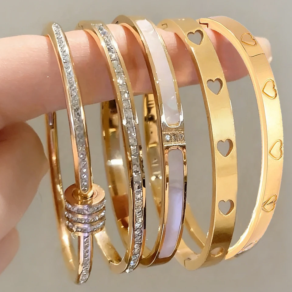 ZAKOL New Buling Pink Crystal Zirconia Stainless Steel Bracelet for Women Versatile Stackable Jewelry Waterproof Bangle Gift $4.30