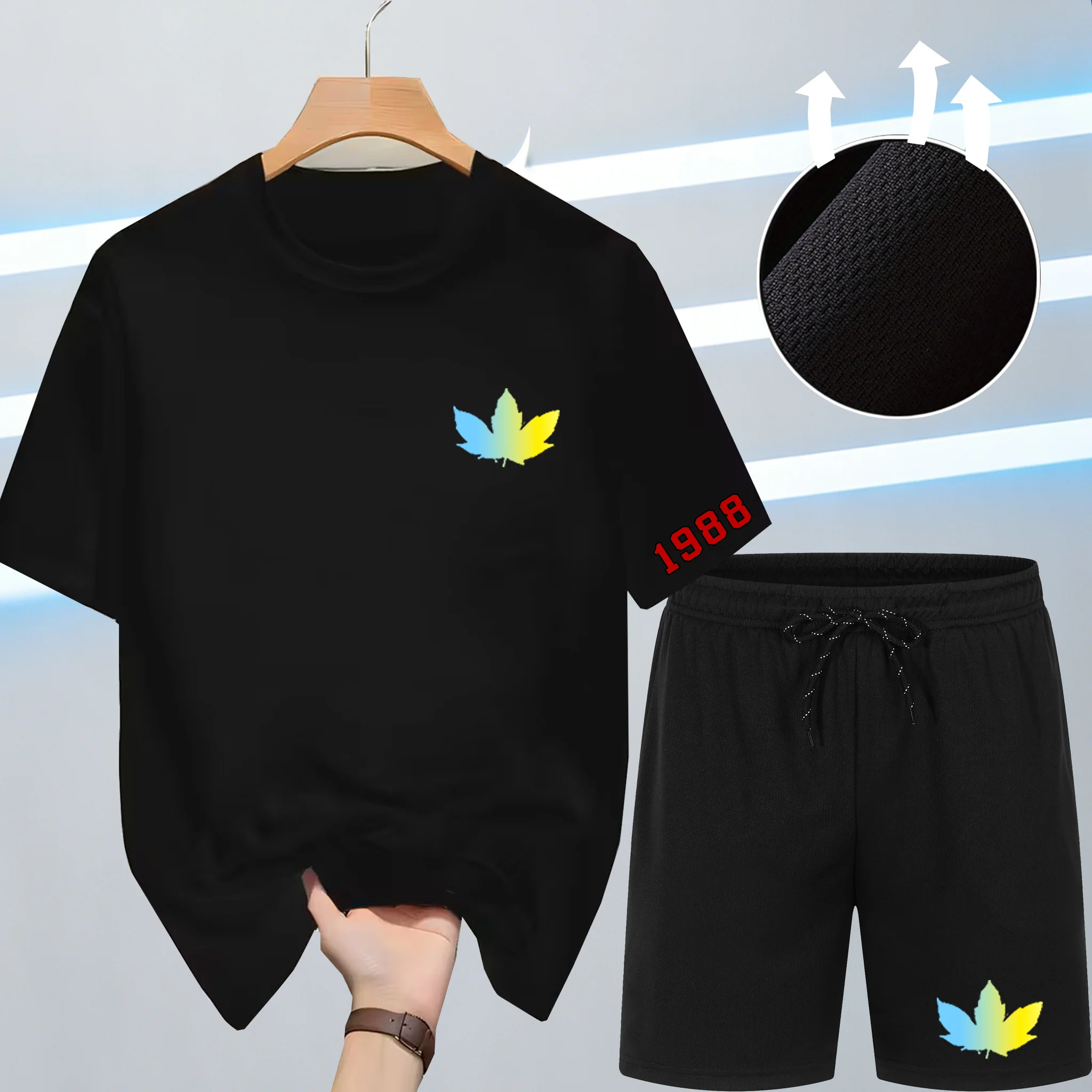 Summer Quick-Dry New Men's 2-Piece Fashion tracksuits Casual Breathable Short Sleeve maple leaf Print Sports T-shirt+Shorts Sets $11.51
