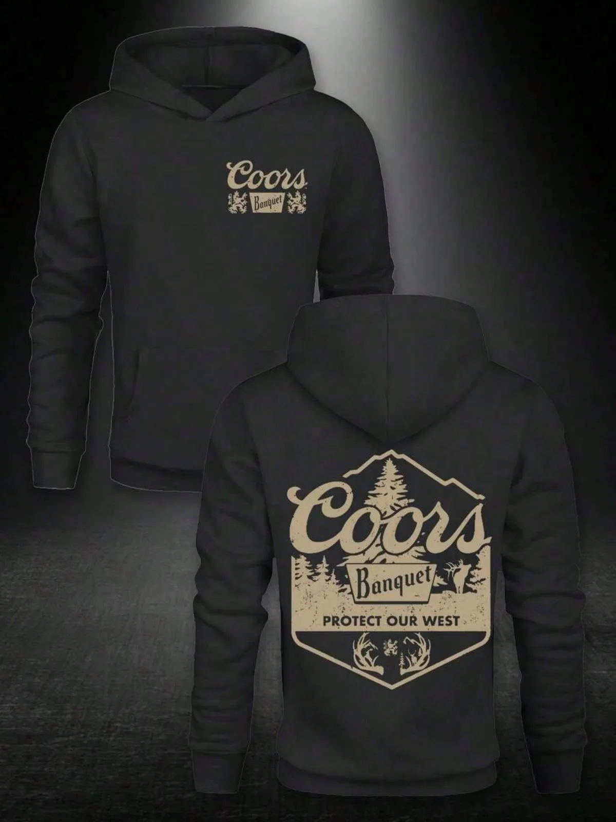 Men's Fashion Casual Coors Banquet Protect Our West Graphic Printed Hooded Sweatshirt with Plush Pockets Suitable Holiday Gifts $15.99