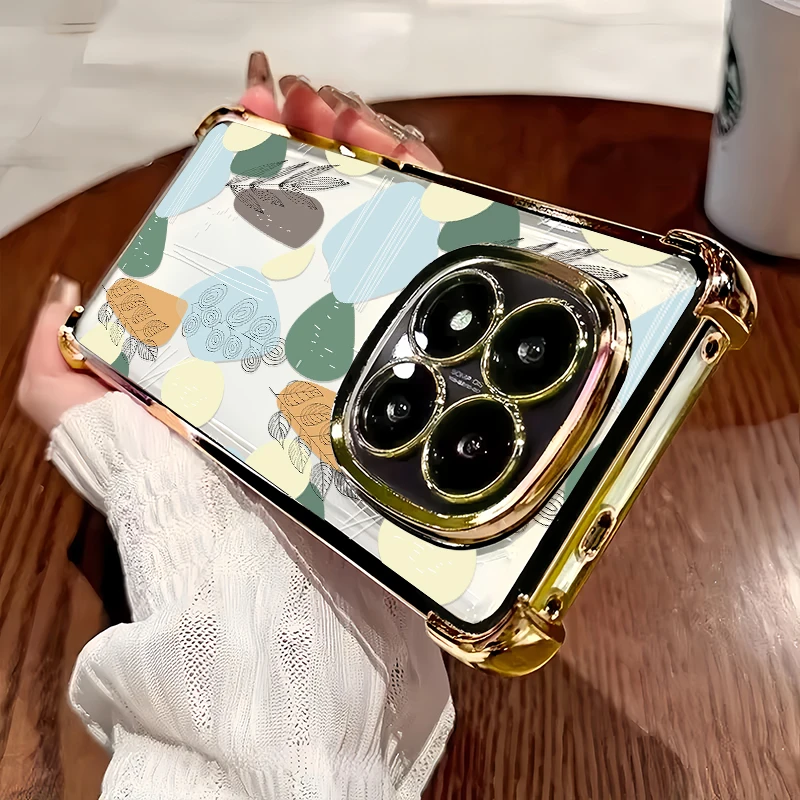 Poco F8 Ultra Silicone Clear TPU Phone Case For Xiaomi Poco F7 F5 Pro F4 F3 Fashion Leaves Painting Shockproof Plating Cover $5.55