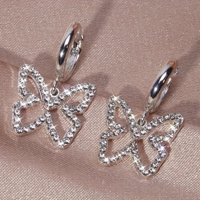 New Sparkling Silver Color Butterfly Zircon Earrings Fashionable and Elegant Women's Festival Party Gift Accessories $2.57