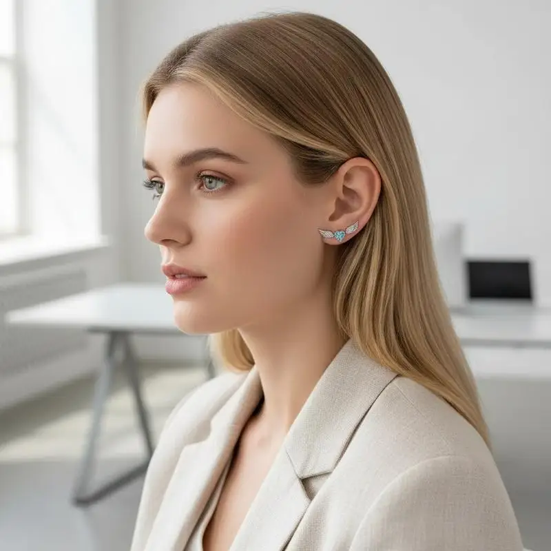 Fashion Luxury Shiny Heart Zircon Wing Ear Bone Nail Earrings For Personality Women Jewelry Accessries Gifts $3.54