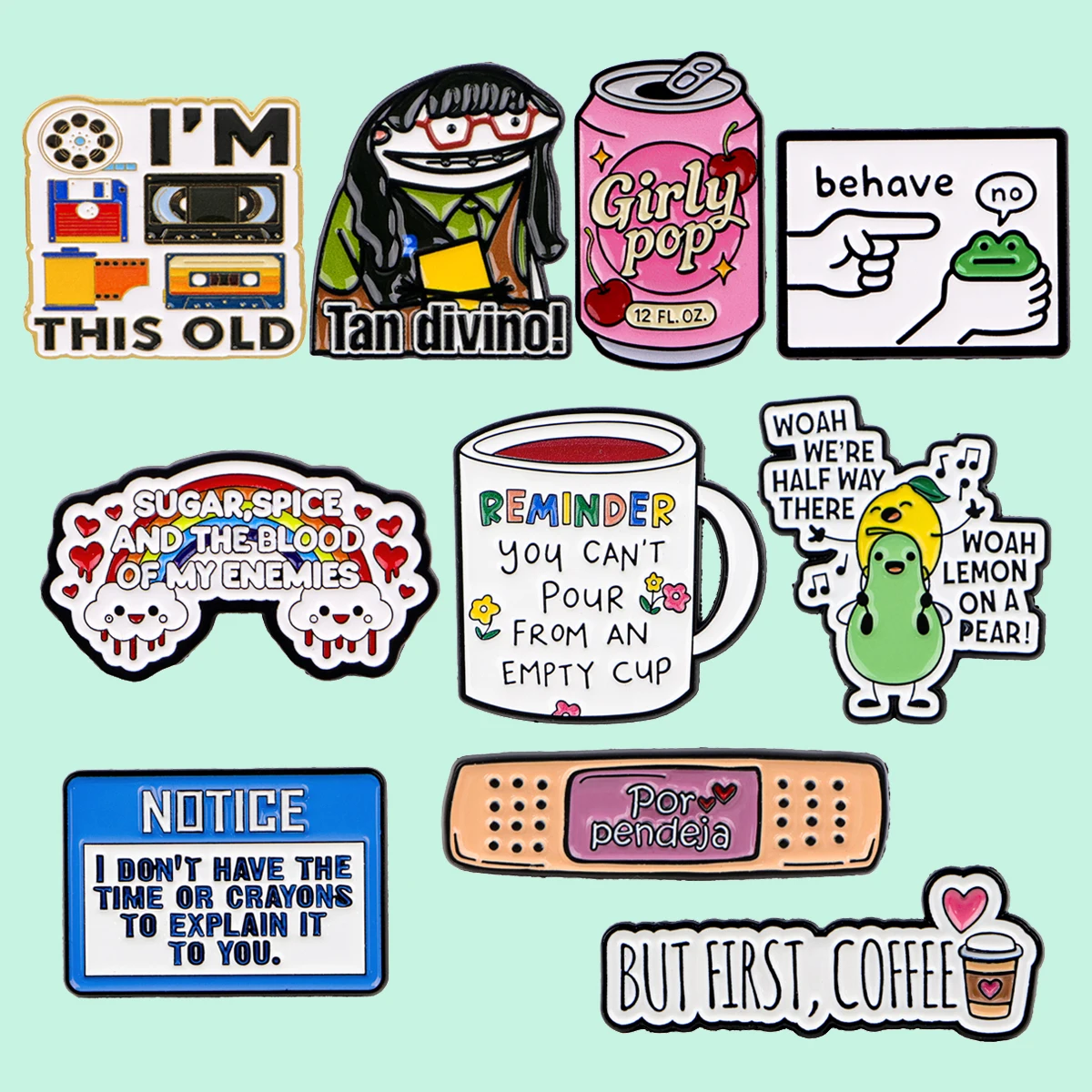 Soda Bottle Quotes Enamel Pin Band-Aid Metal Brooch Backpack Hat Bag Collar Lapel Cartoon Badges Fashion Jewelry Collection Gift $2.20