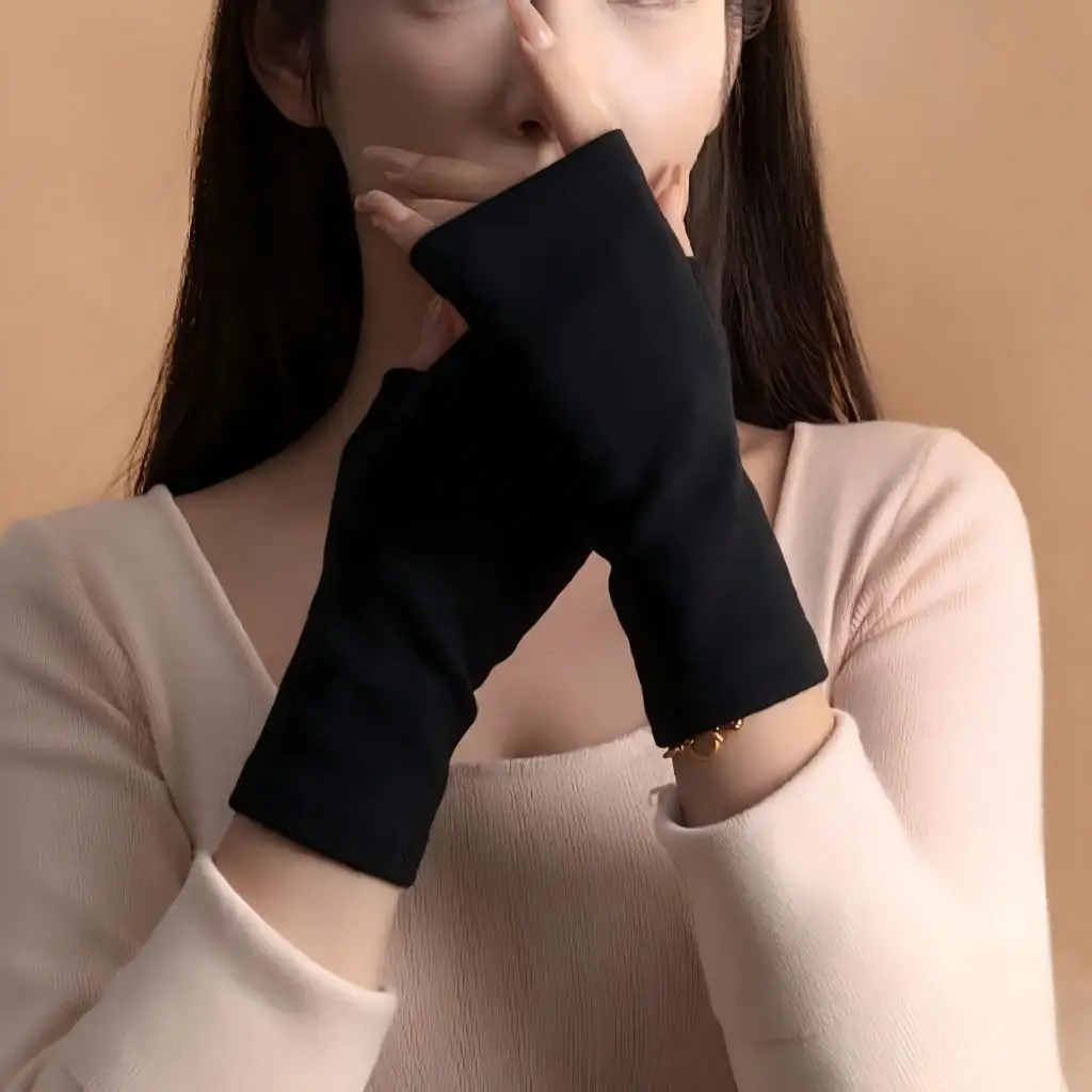 Stylish Solid Color Half Finger Gloves, Women's Winter Knitted Fingerless Mittens, Casual Warm Gloves for Driving Office $2.36