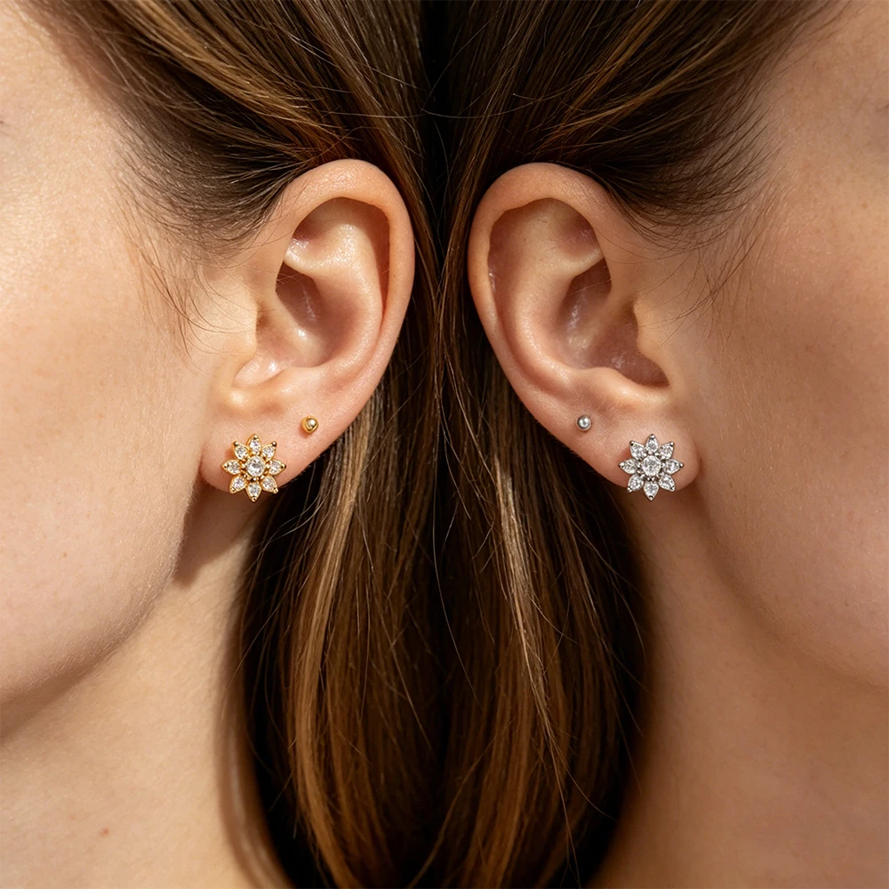 Y2K Aesthetic Fashion Zircon Ear Studs Delicate Temperament Snowflakes Stud Earrings for Women Fine Jewelry Gift Wife Lover $2.22