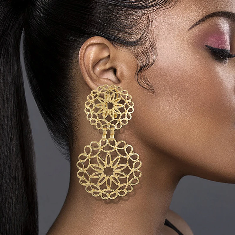 Women Earrings Luxury Design Big Drop Earrings Two Tone Fashion Jewelry Wedding Party Gift Trending $12.45