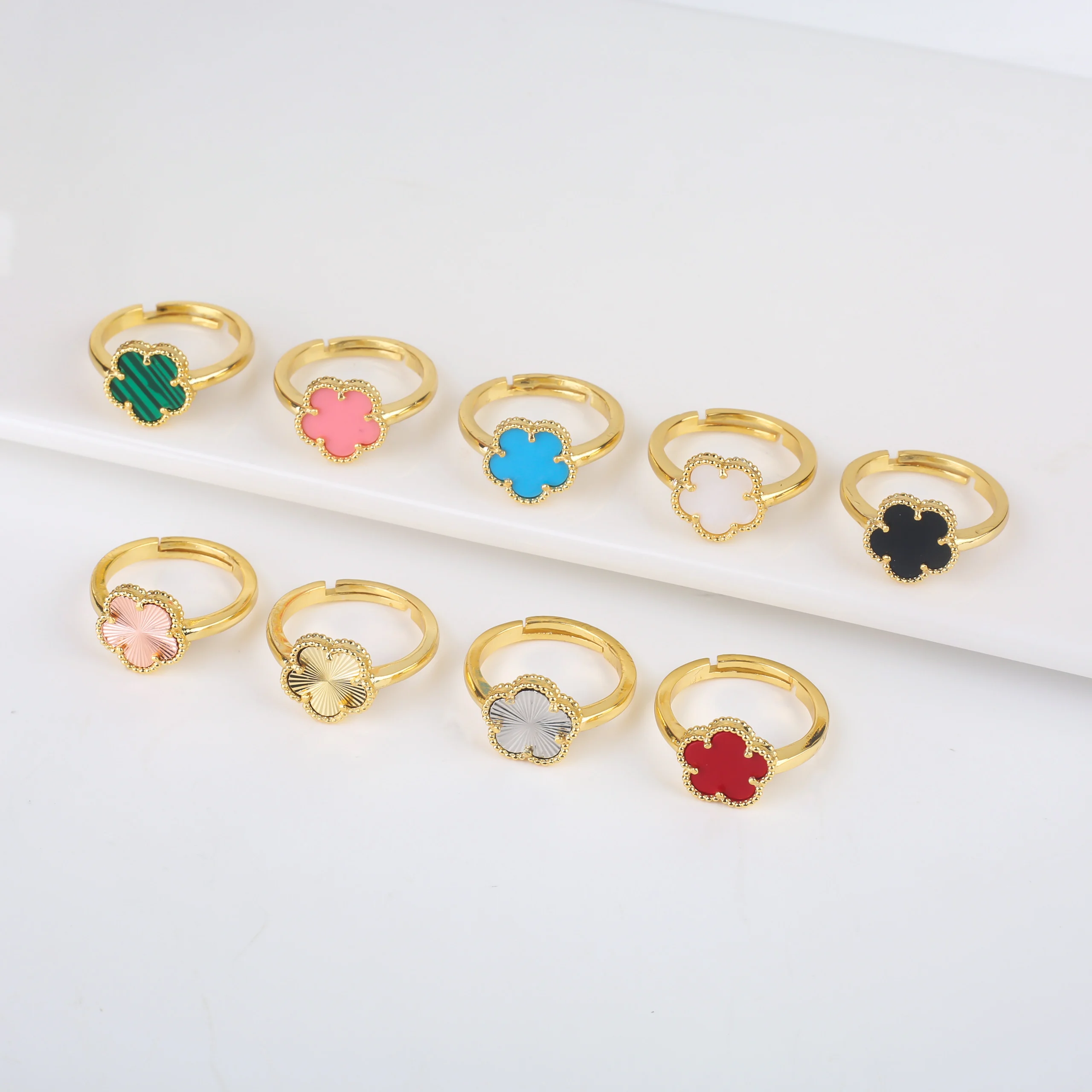 Adjustable Opening Shell New Hot Selling Plum Blossom Ring For Women's Stone Gold Plated Five Leaf Flower Cute Clover $3.61
