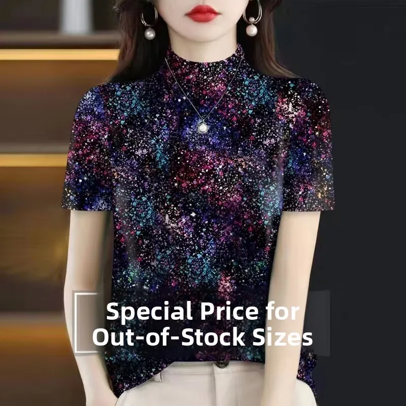 Fashionable Loose Silk Blend Short Sleeve Half High Collar Top Women's Summer New Style Mom Belly Covering Stylish T-shirt $7.07