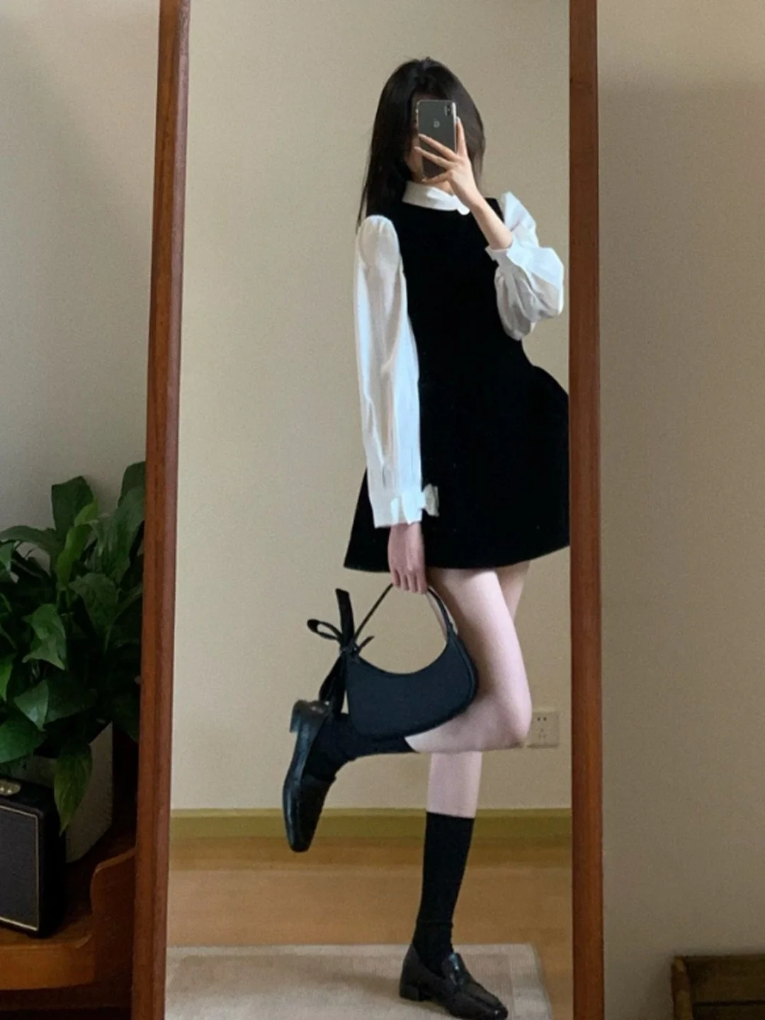 Korean Style Velvet Vest And Short Skirt Two-Piece Set Spring Fashion Women's Comfortable Warm Clothing High Waist Flared Skirt $37.39