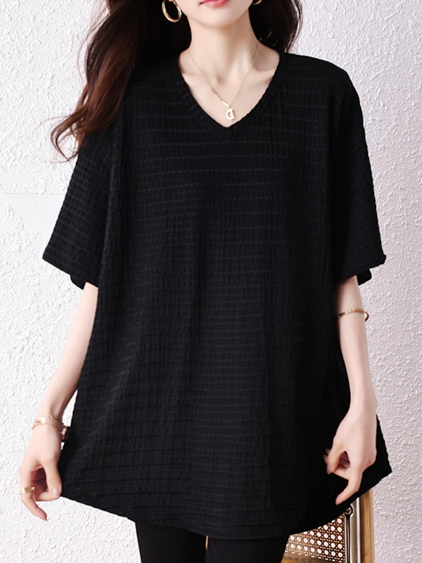 Slimming Loose plus Size Color Fashionable Summer T-Shirt Women's Clothing Versatile Casual Breathable V-Neck Mid-Length $21.05