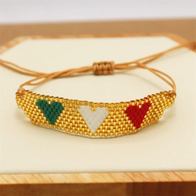 Bohemia Rice bead bracelet Three-colored hearts Yellow Adjustable Hand weaving Fashion Simplicity Creativity Ethnic style Beaded $3.44