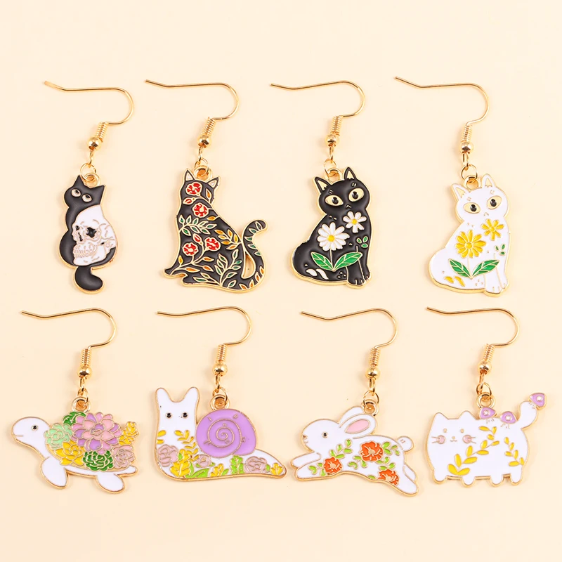 Mixed Style Boho Enamel Floral Cat Rabbit Fox Pendant Earrings Cute Cartoon Dangle Earrings For Women Girls Party Jewelry Gifts $1.17