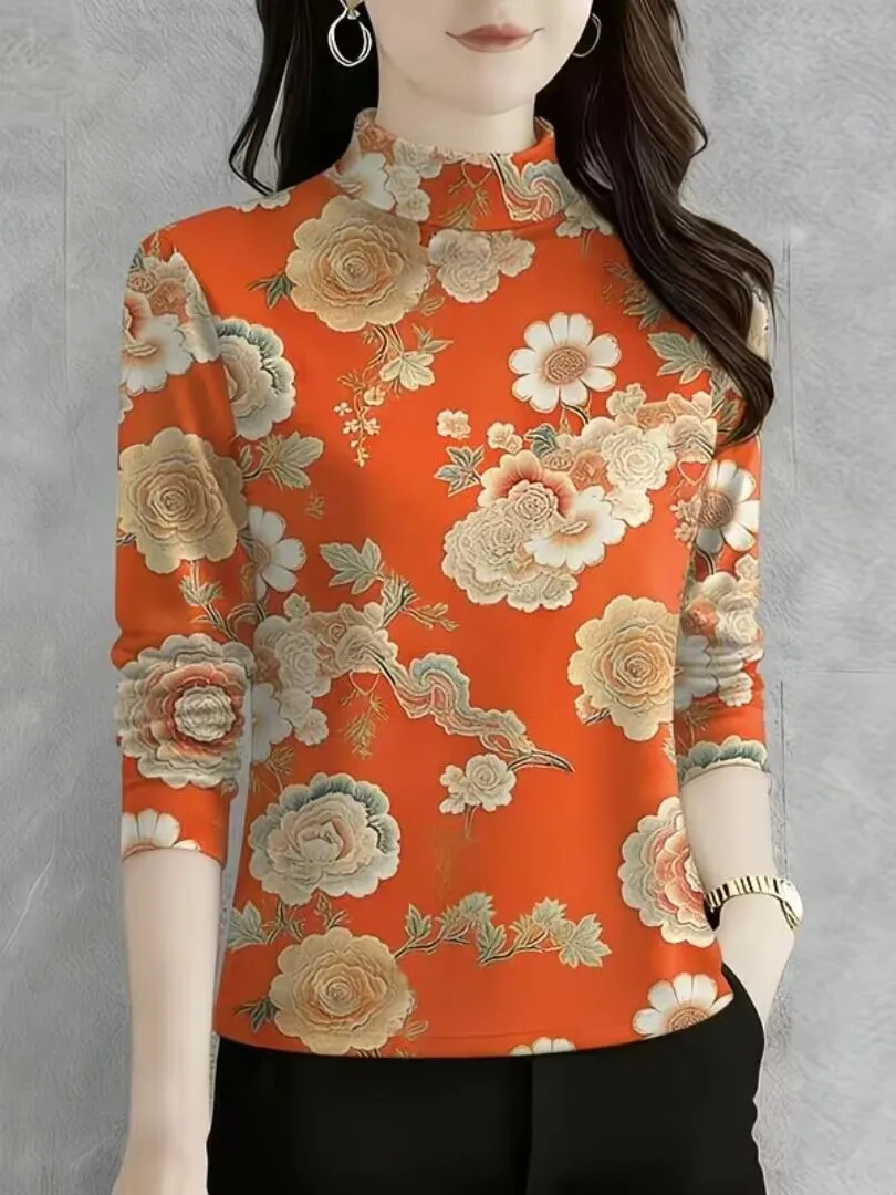 Spring New Fashionable Long Sleeve T-Shirt Half High Collar Base Layer Women's Top Commute Style Universal Fit Slimming Milk ... $8.42