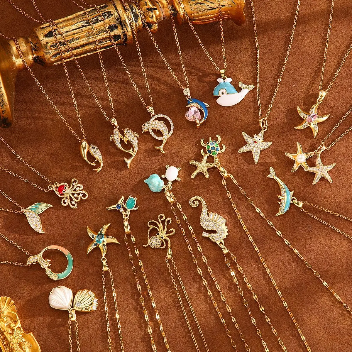 Original Logo 2026 Hot Sale Charm Marine Organisms Whale Starfish Seahorse Octopus Diamond Necklaces Fit Brand DIY Jewelry Gifts $5.65