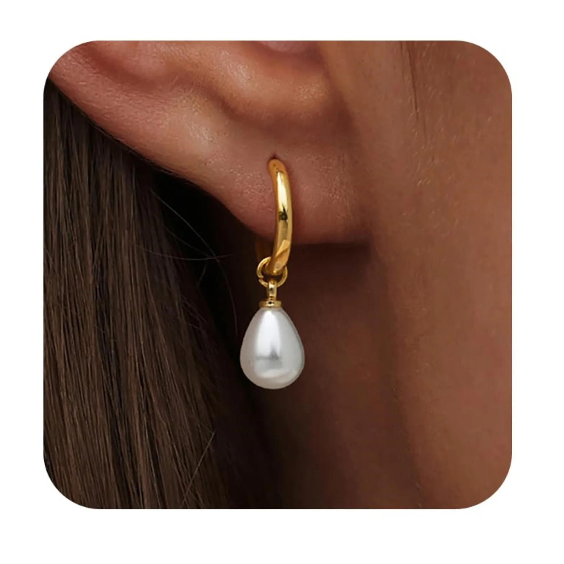 Fashionable 18k Gold-Plated Imitation Pearl Hanging Earrings With Zircon Stainless Steel Women's Geometric Daily Earrings $0.95