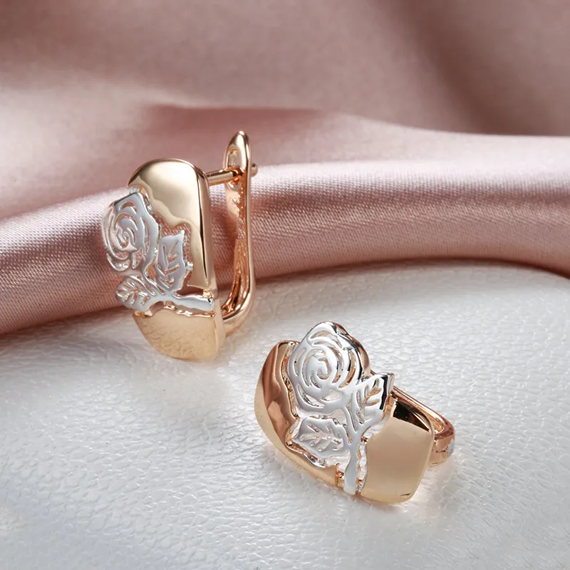 1 Pair Women's Luxury Vintage Hollow Rose Earrings, Gold & Silver Two-Tone, Fashion Jewelry for Daily & Party Wear $0.39
