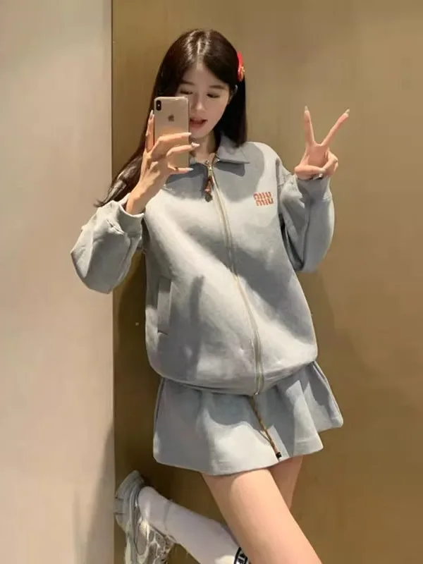 American Style Letter Print Hoodie Jacket Women's Autumn New Arrival Slim Fit Skirt Casual Set Fashionable Two-Piece Suit $17.51