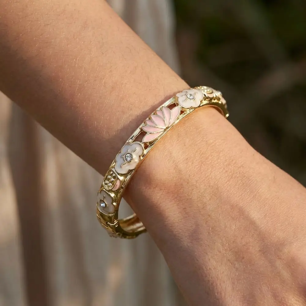 New Colorful Enamel Floral Bangle Hollow Out Chinese Style Dainty Jewelry Handmade Elegant Flower Bangle Women $1.90