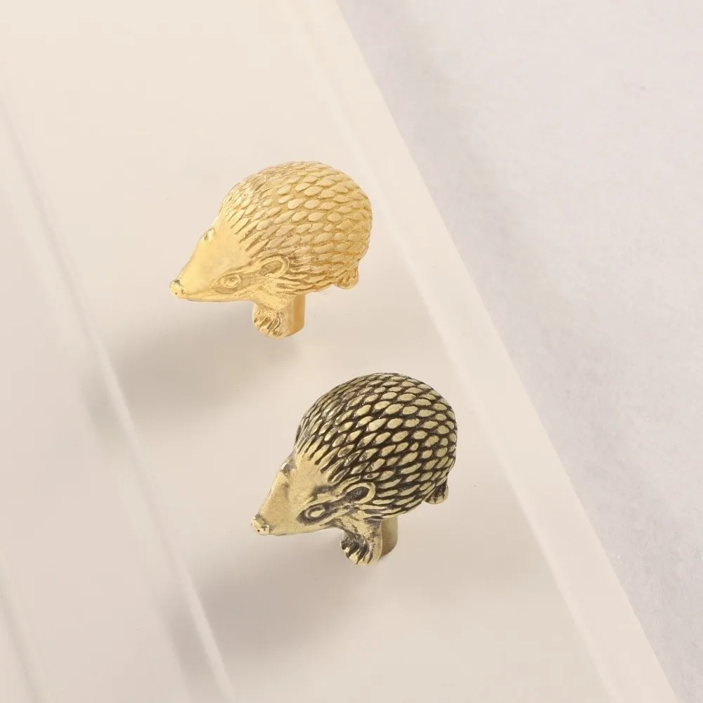 Retro Little Hedgehog Brass Handle Furniture Hardware Single Hole Cabinet Door Knobs Vintage Push-pull Wardrobe Drawer Pulls $5.48