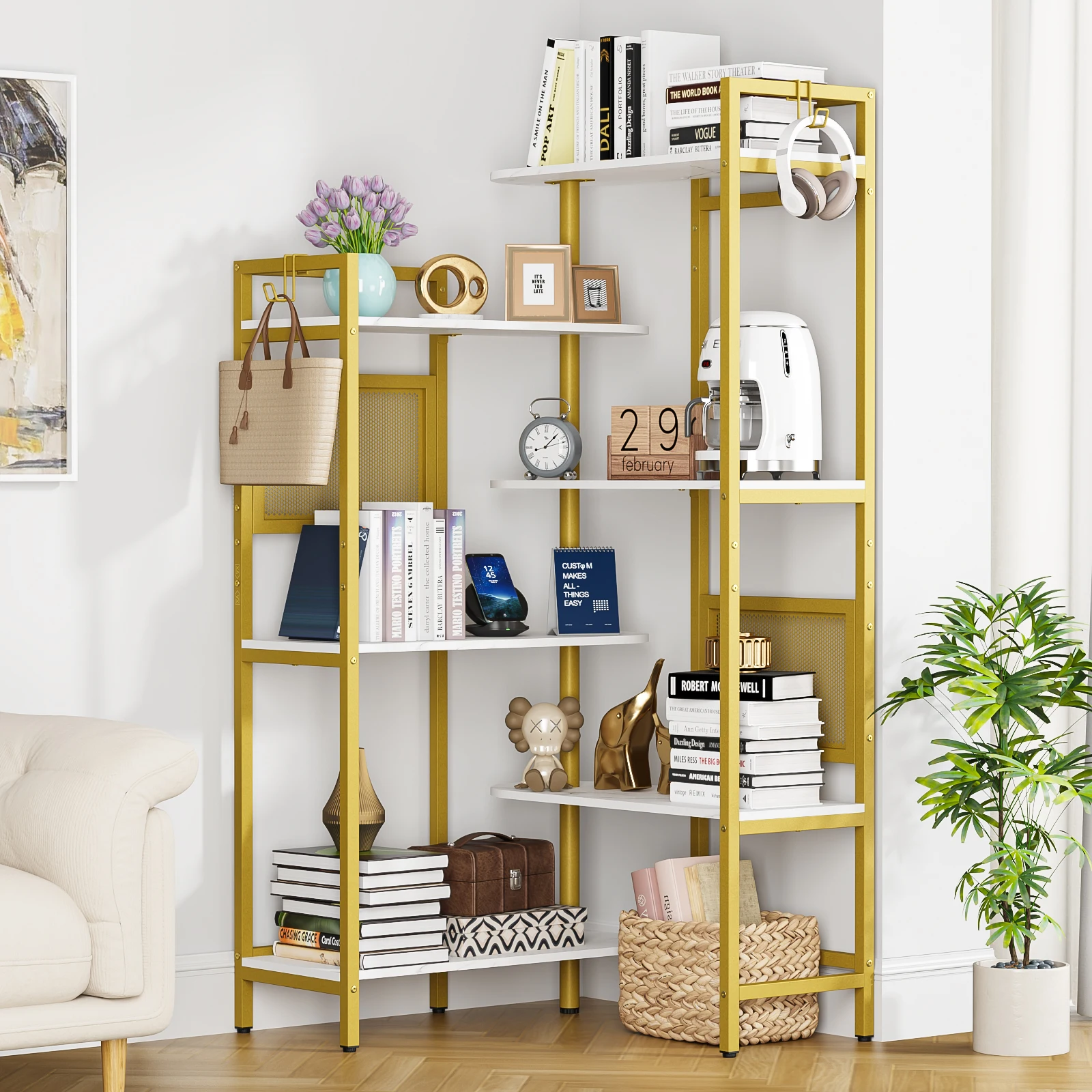 6-Tier Ajustable Bookshelf Modern Wood Bookcase for Home Office, Open Standing Shelf with Metal Frame for Living Room Bed Room $80.32