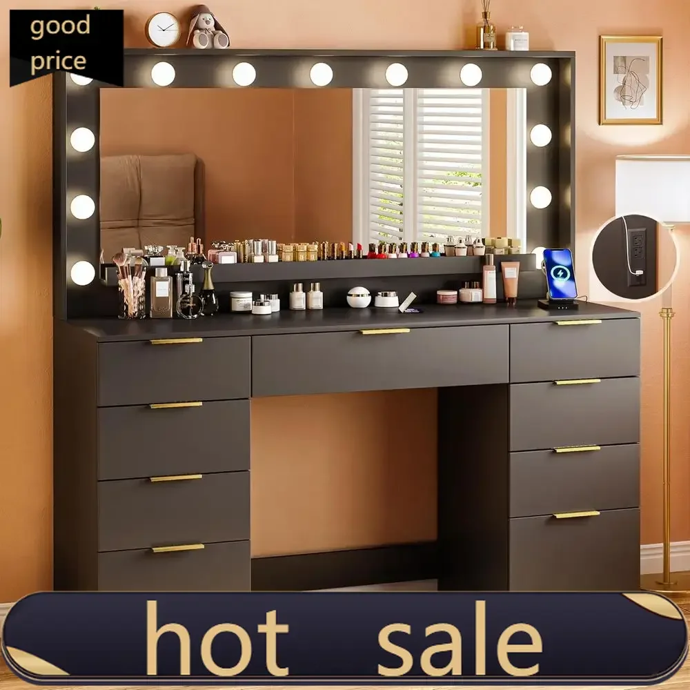 Activity pricePopular45.3 LED-lit Large Mirror Vanity Desk with Power Outlet, 9 Drawers & Adjustable Lighting, Black $138.02