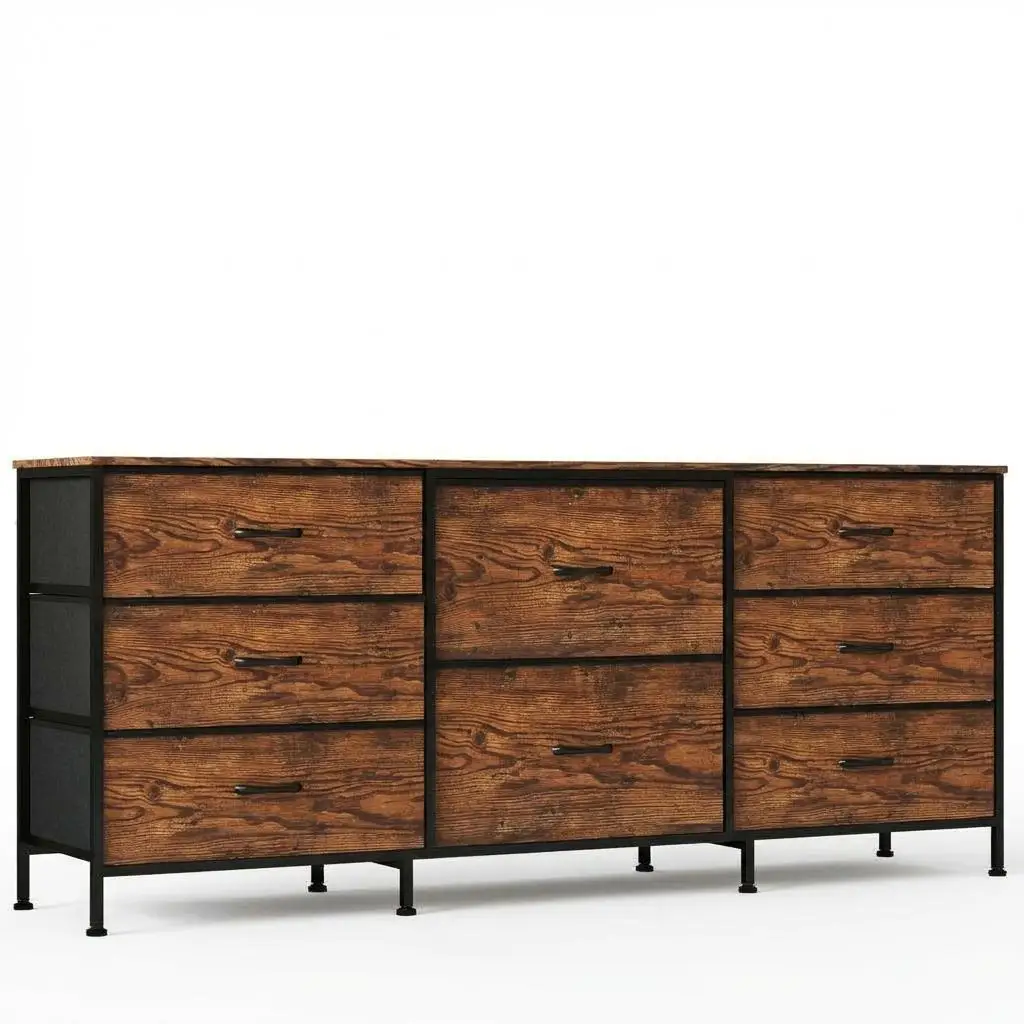 8 Drawer Dresser TV Stand for 65 Inch TV, Wide Fabric Storage Chest with Wooden Top and Metal Frame, Entertainment Center $76.37